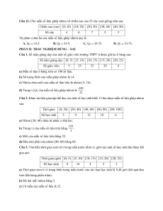 Câu 10. Cho mẫu số liệu ghép nhóm về chiều cao của 25 cây xoài giống như sau: