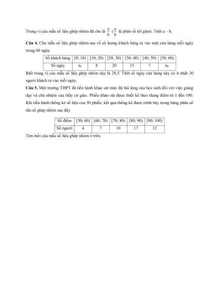 Câu 1. Nhóm số liệu ghép nhóm thường được cho dưới dạng