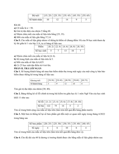 Câu 4. Trong một đề tài nghiên cứu về bệnh nhân, người ta ghi lại độ tuổi của bệnh nhân mắc