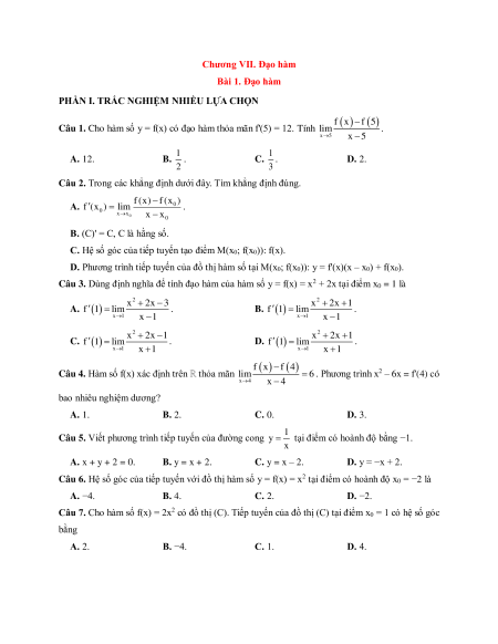 Chương VII. Đạo hàm Bài 1. Đạo hàm