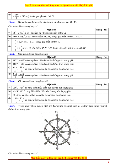 c) 36, 216 có cùng điểm biểu diễn trên đường tròn lượng giác d) 41 15 − ,