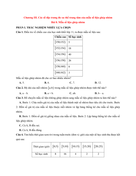 Bài 8. Mẫu số liệu ghép nhóm