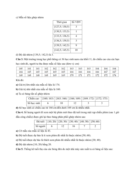 Câu 3. Một trường trung học phổ thông có 36 học sinh nam của khối 11, đo chiều cao của các bạn