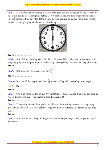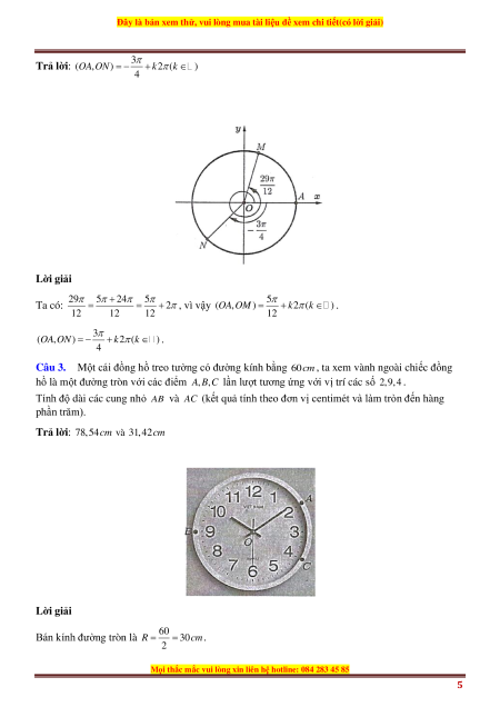 Câu 3. Một cái đồng hồ treo tường có đường kính bằng 60 cm , ta xem vành ngoài chiếc đồng