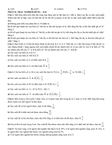 Câu 3. Cho hai biến cố A, B có xác suất lần lượt là 2 3 P A ; P B và 1 P AB . 5 5 5