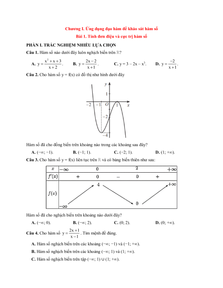 Chương I. Ứng dụng đạo hàm để khảo sát hàm số