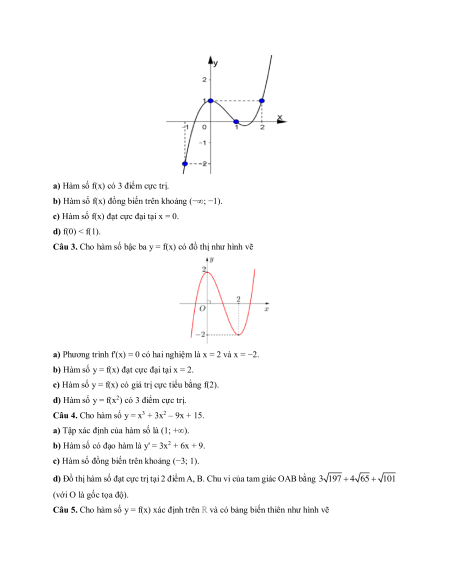 Câu 3. Cho hàm số bậc ba y = f(x) có đồ thị như hình vẽ