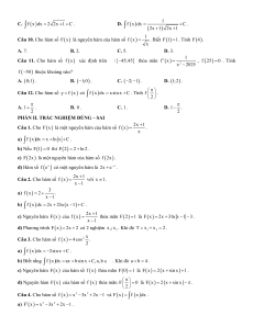f x e 2 . Khẳng định nào dưới đây là đúng? A. x2 f x dx e C . B. x f x dx e 2x C . C. x f x dx e C . D. x f x dx e 2x C . Câu 7. Biết x 2
