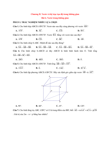 Chương II. Vectơ và hệ trục tọa độ trong không gian