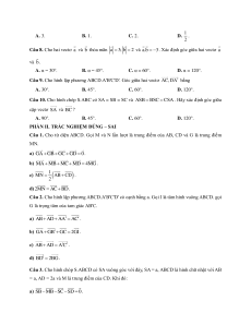 Câu 4. Cho hình chóp S.ABCD có đáy ABCD là hình bình hành tâm O. Tính tổng SA SB SC SD . A. 2SO . B. 4SO . C. 3SO . D. 0 .
