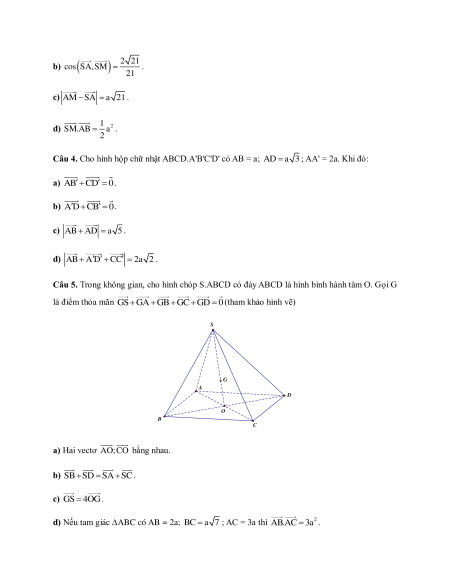 Câu 3. Cho hình chóp S.ABCD có SA vuông góc với đáy, SA = a, ABCD là hình chữ nhật với AB