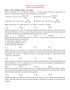 Câu 10. Cho hai biến cố A và B có P(B) > 0 và PA | B 0,7 . Tính PA | B có kết quả là