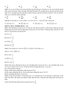 Câu 7. Một lô sản phẩm có 30 sản phẩm, trong đó có 4 sản phẩm chất lượng thấp. Lấy liên tiếp hai sản phẩm