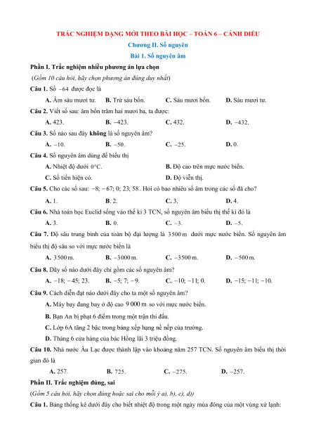 TRẮC NGHIỆM DẠNG MỚI THEO BÀI HỌC – TOÁN 6 – CÁNH DIỀU