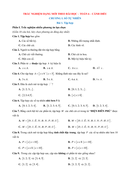CHƯƠNG I. SỐ TỰ NHIÊN Bài 1. Tập hợp