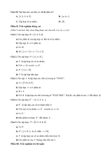 Câu 3. Cho tập A là tập hợp các chữ cái trong từ “TOÁN”.