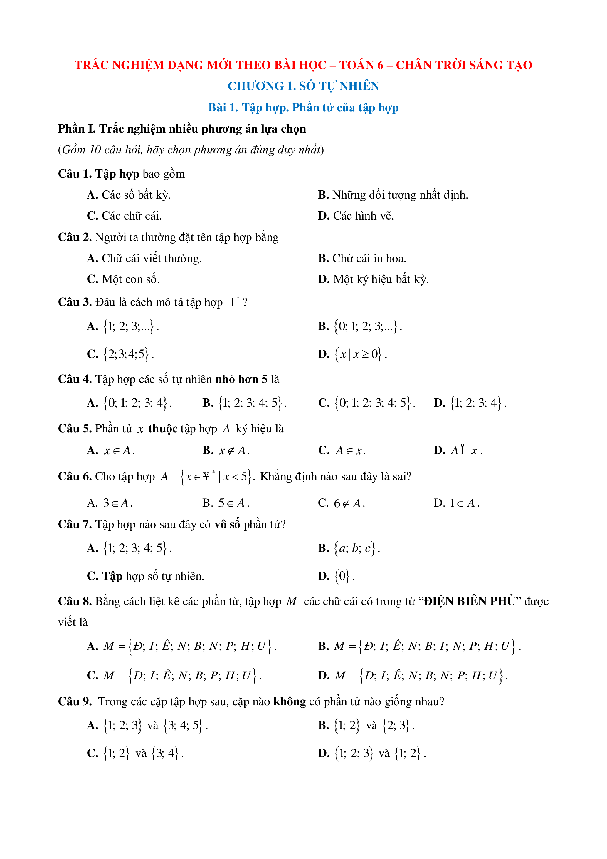 TRẮC NGHIỆM DẠNG MỚI THEO BÀI HỌC – TOÁN 6 – CHÂN TRỜI SÁNG TẠO
