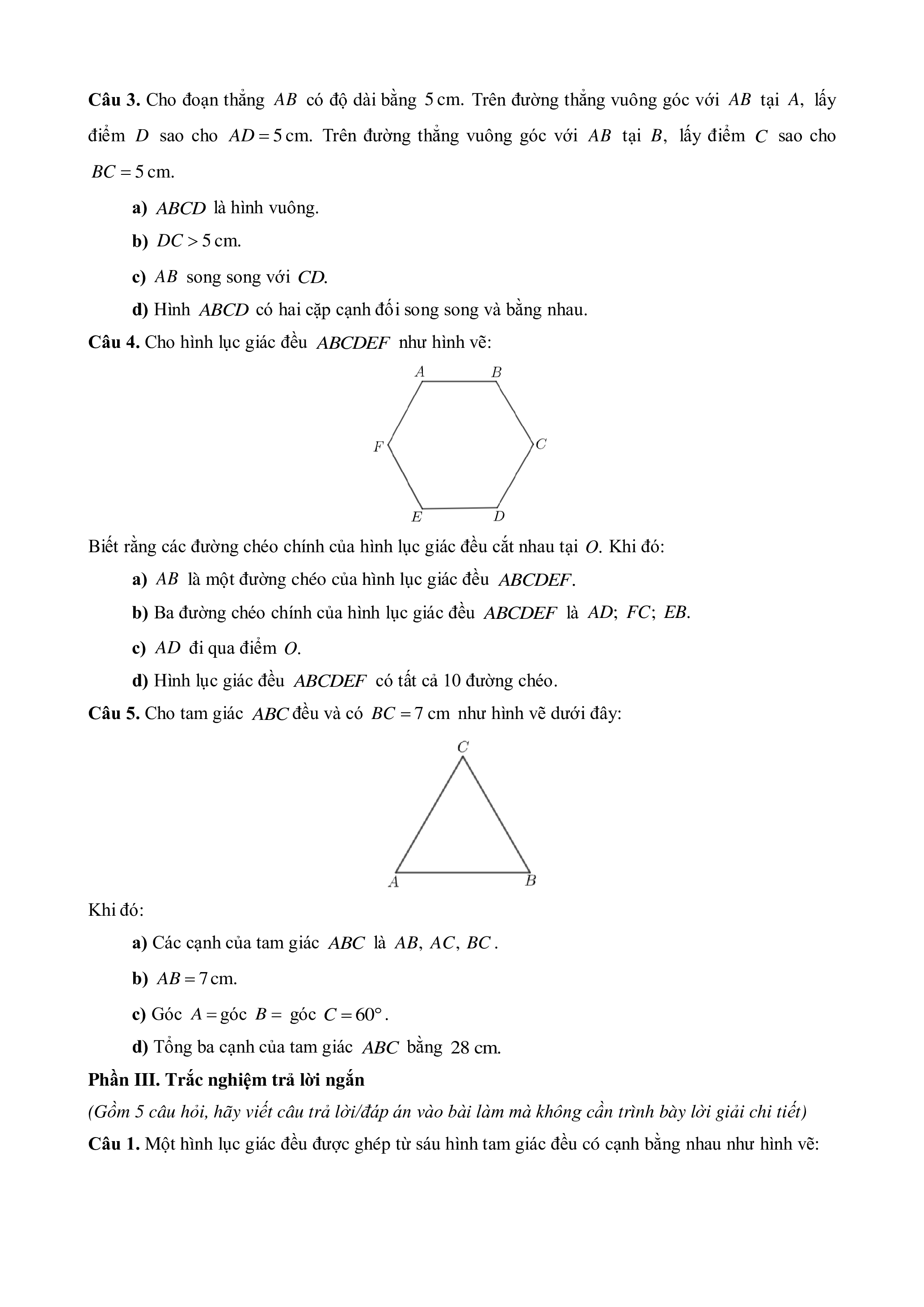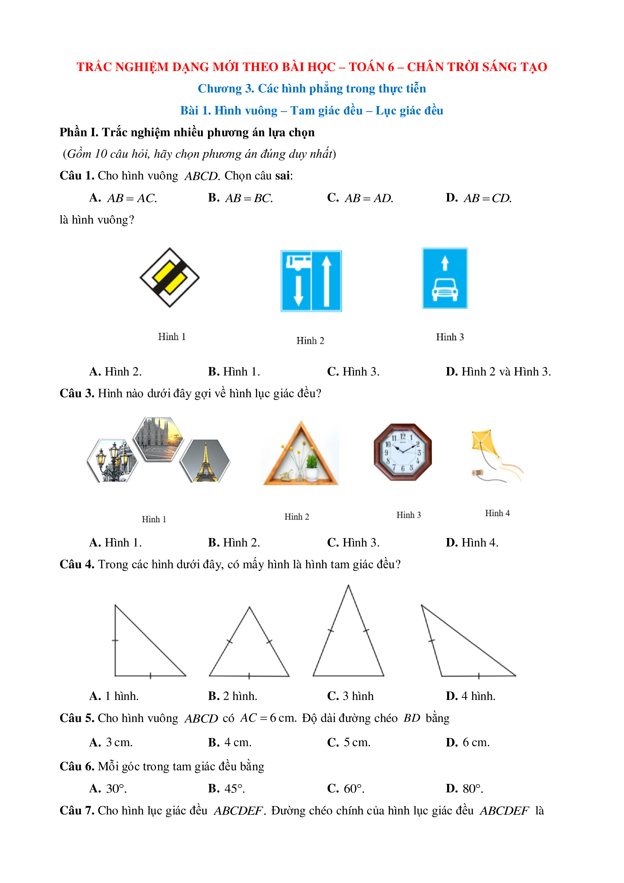 Bài 1. Hình vuông – Tam giác đều – Lục giác đều