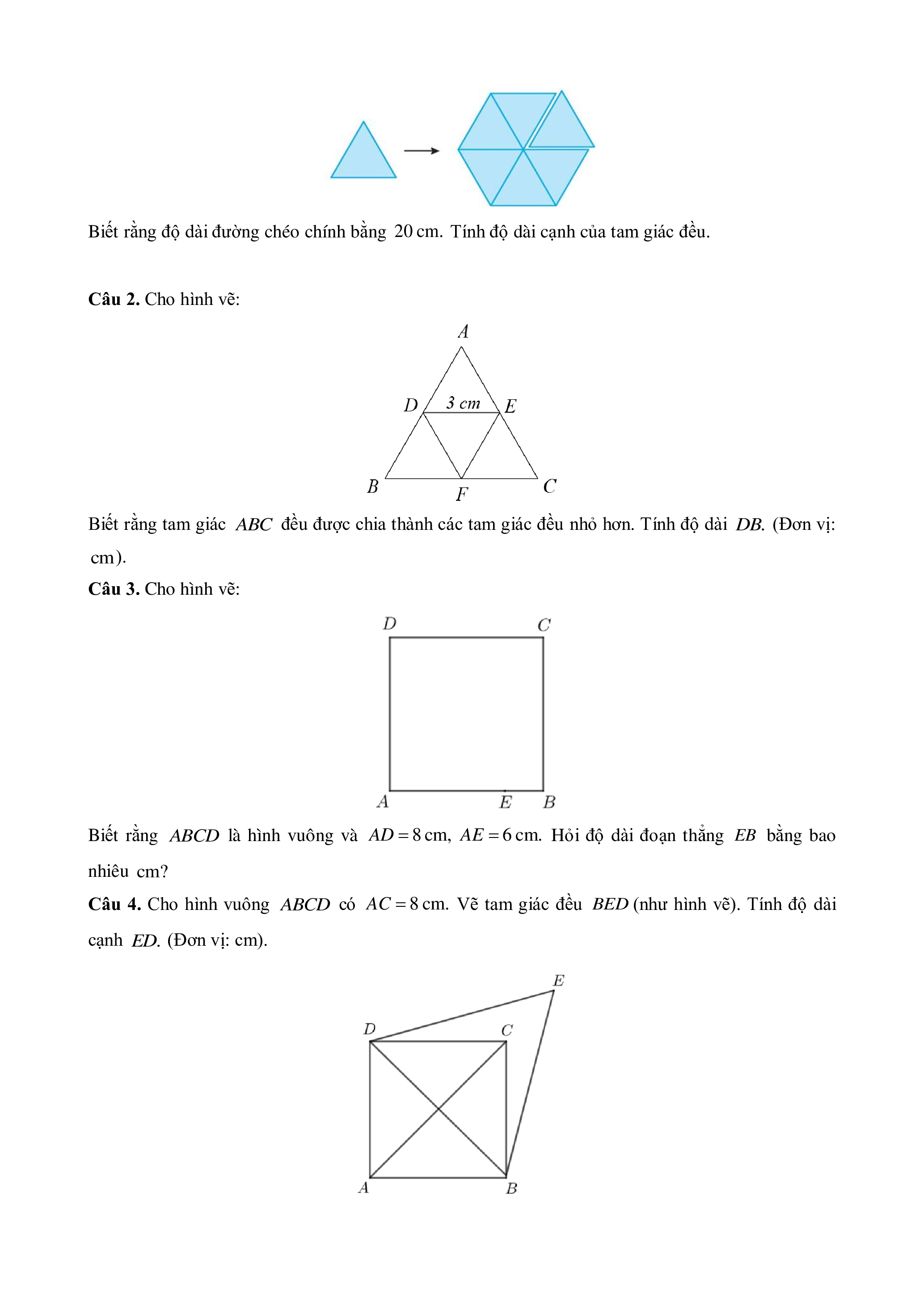 Câu 4. Cho hình vuông ABCD có AC 8 cm. Vẽ tam giác đều BED (như hình vẽ). Tính độ dài cạnh . ED (Đơn vị: cm).