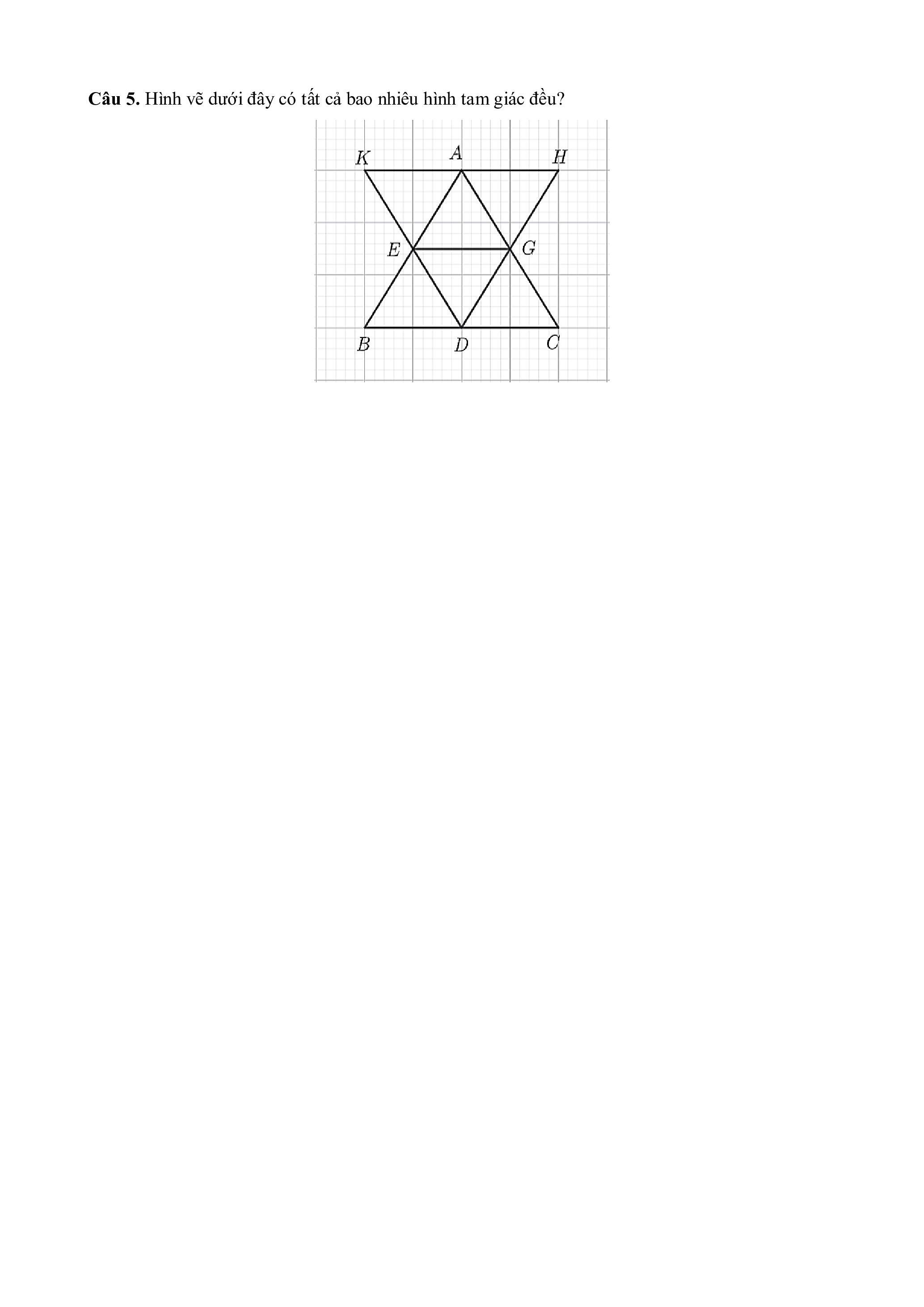 Câu 4. Trong các hình dưới đây, có mấy hình là hình tam giác đều? A. 1 hình. B. 2 hình. C. 3 hình D. 4 hình.