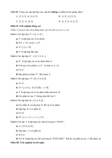 Câu 5. Cho tập A là tập hợp các chữ cái trong từ “TOÁN”.
