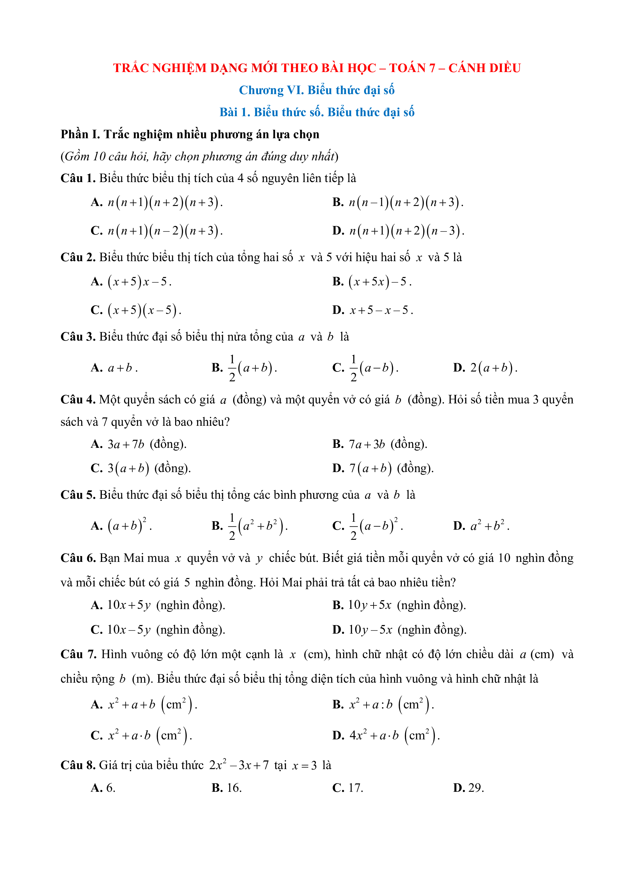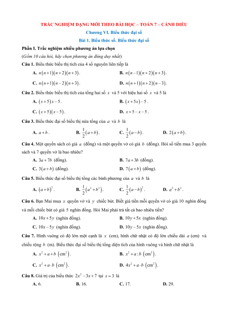 Chương VI. Biểu thức đại số