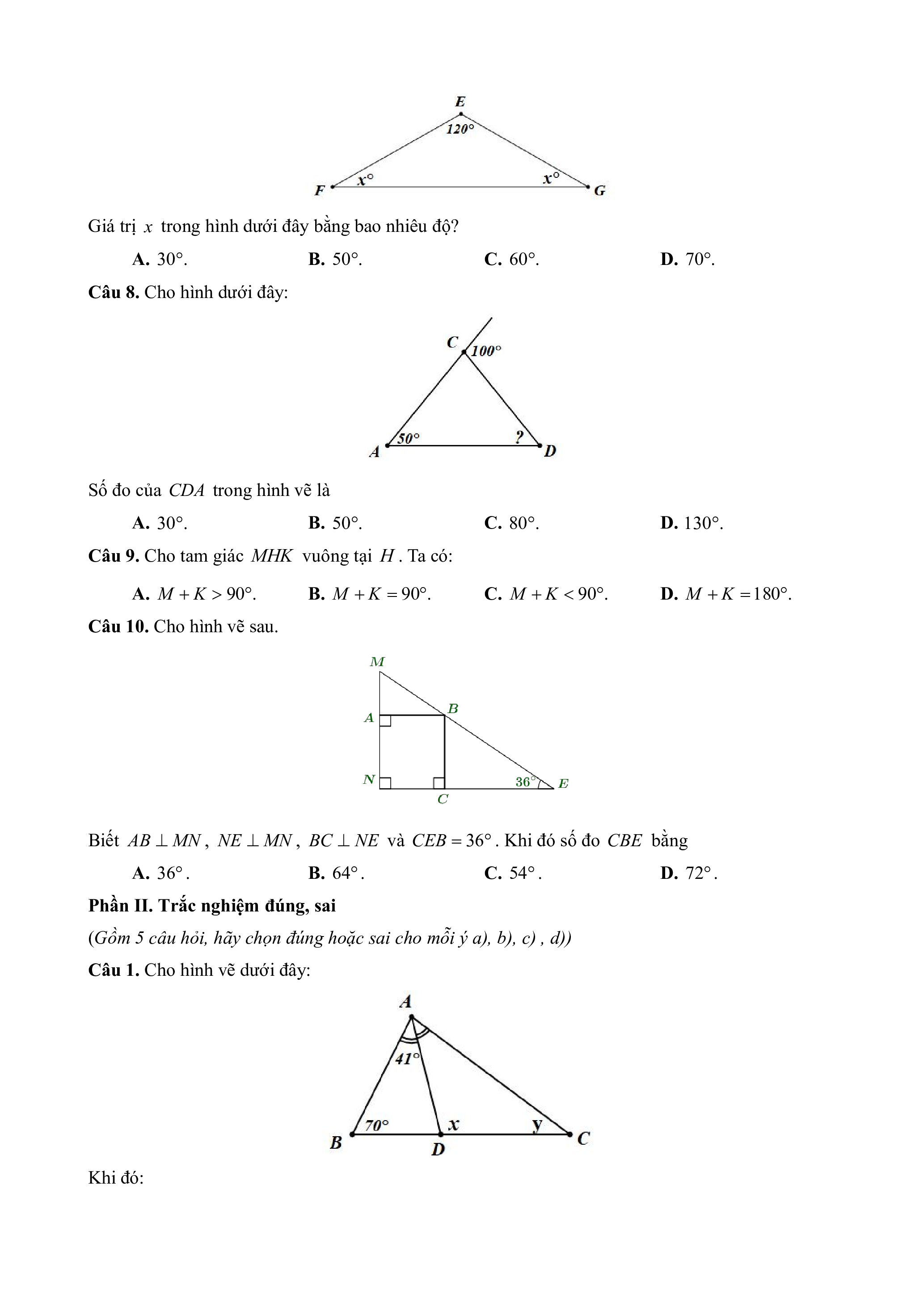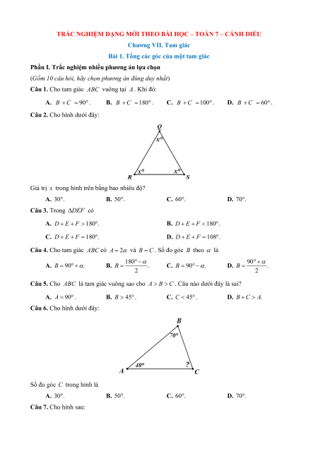 TRẮC NGHIỆM DẠNG MỚI THEO BÀI HỌC – TOÁN 7 – CÁNH DIỀU Chương VII. Tam giác