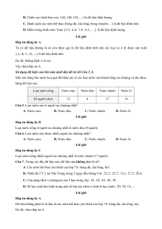 Câu 5. Loại nước nào ít người ưa chuộng nhất? A. Nước cam. B. Nước dứa. C. Nước chanh. D. Nước ổi. Lời giải Đáp án đúng là: B