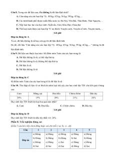 Câu 10. Thu thập số liệu về sở thích ăn năm loại trái cây của học sinh lớp 7D1 cho kết quả ở bảng sau: Cam Măng cụt Dưa hấu Chôm chôm Dâu tây 20% 15% 20% 21% 24%