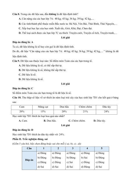 Câu 9. Dữ liệu sau thuộc loại nào: Số điểm môn Toán của các bạn trong tổ.