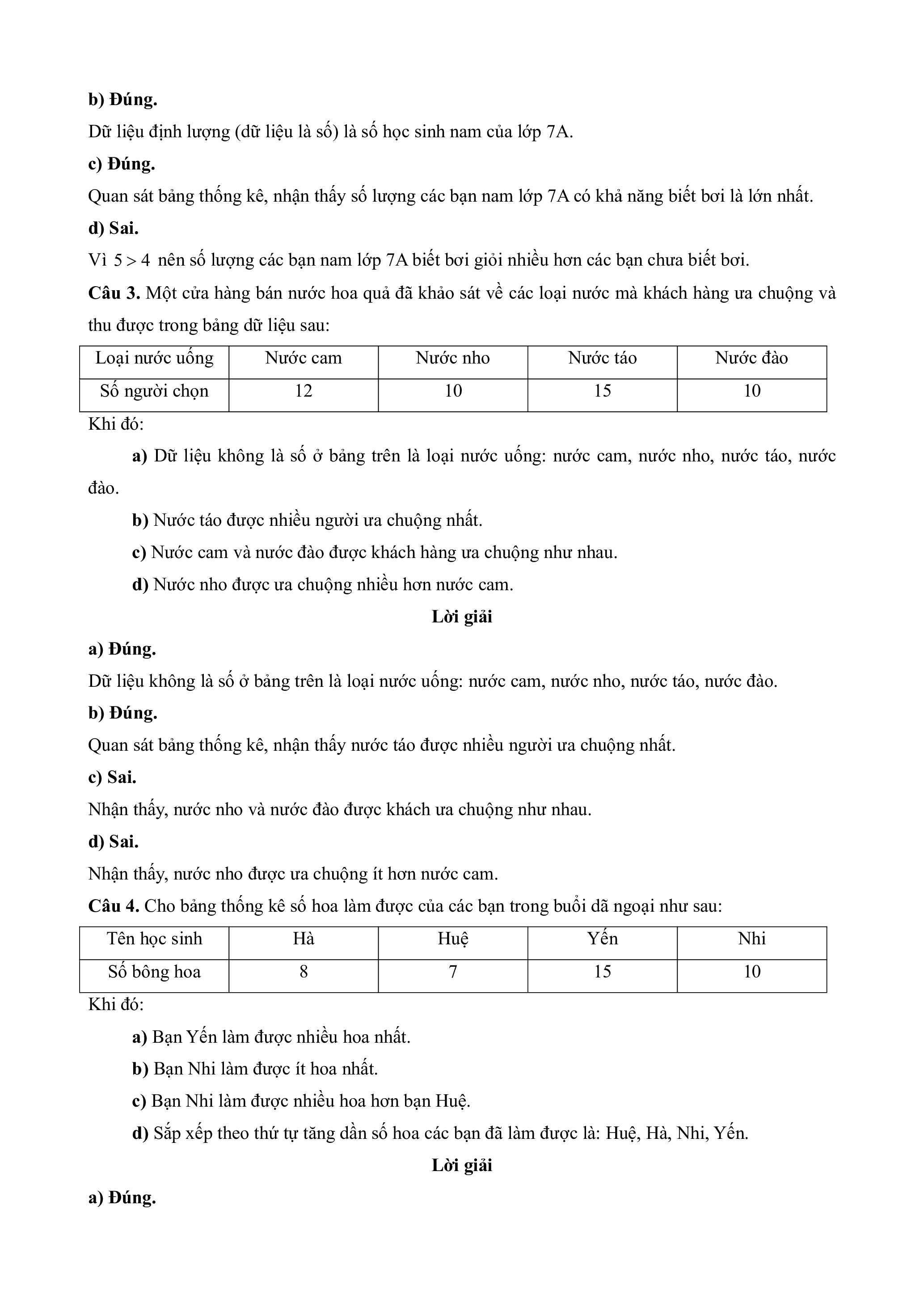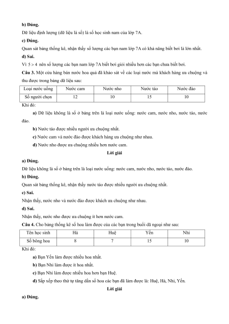 d) Số sách truyện được các bạn học sinh lớp 7A ủng hộ là 15 quyển. Lời giải a) Đúng.
