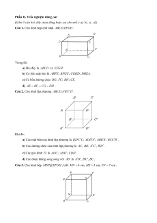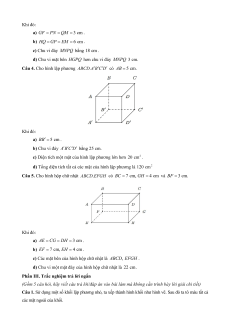 Câu 1. Cho hình hộp chữ nhật ABC . D EFGH . Trong đó: