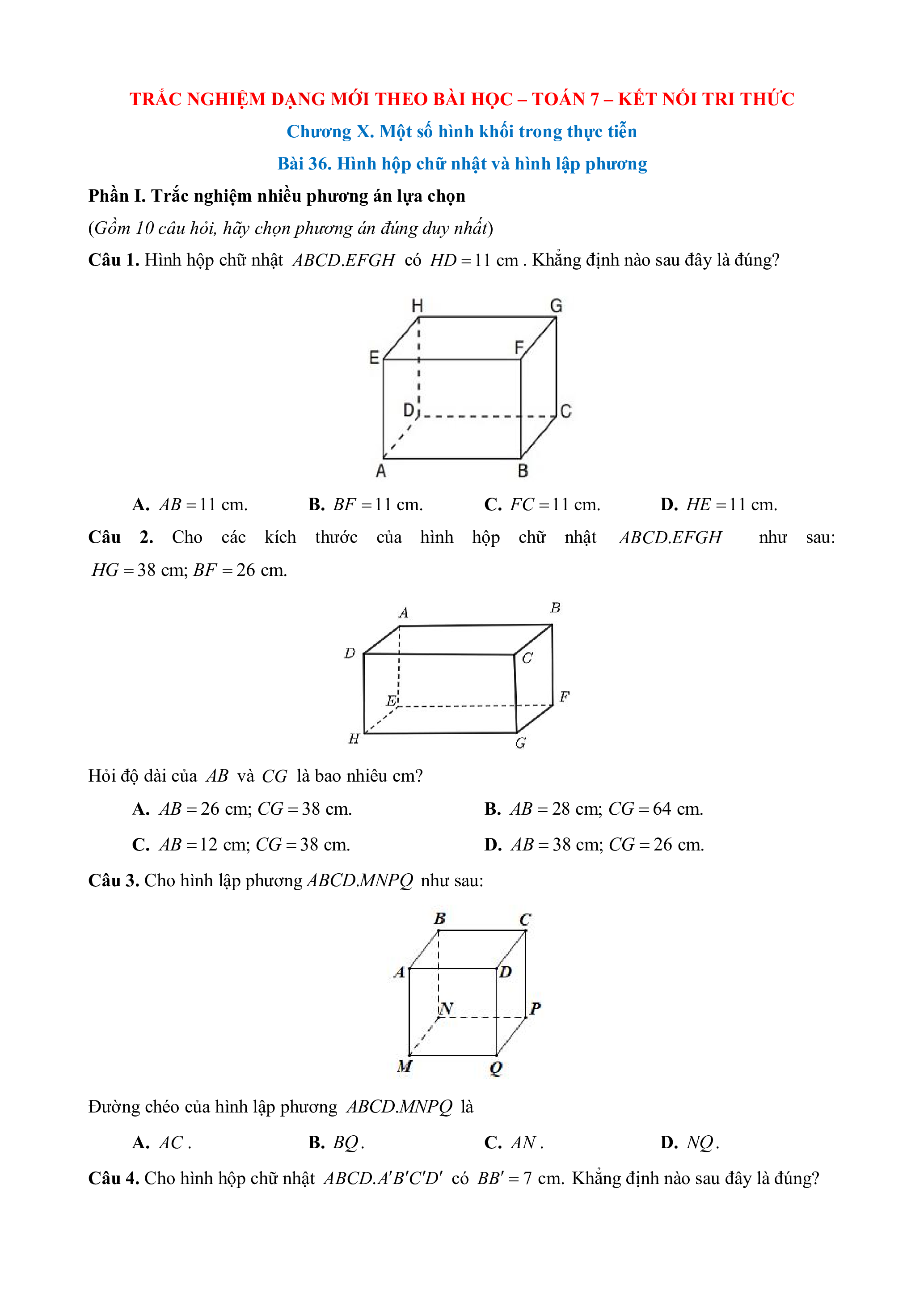 Câu 1. Hình hộp chữ nhật ABC .