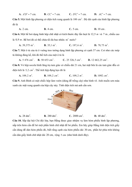Câu 10. Sắp đại hội Chi đội lớp, bạn Hằng được giao nhiệm vụ làm hòm phiếu hình lập phương,