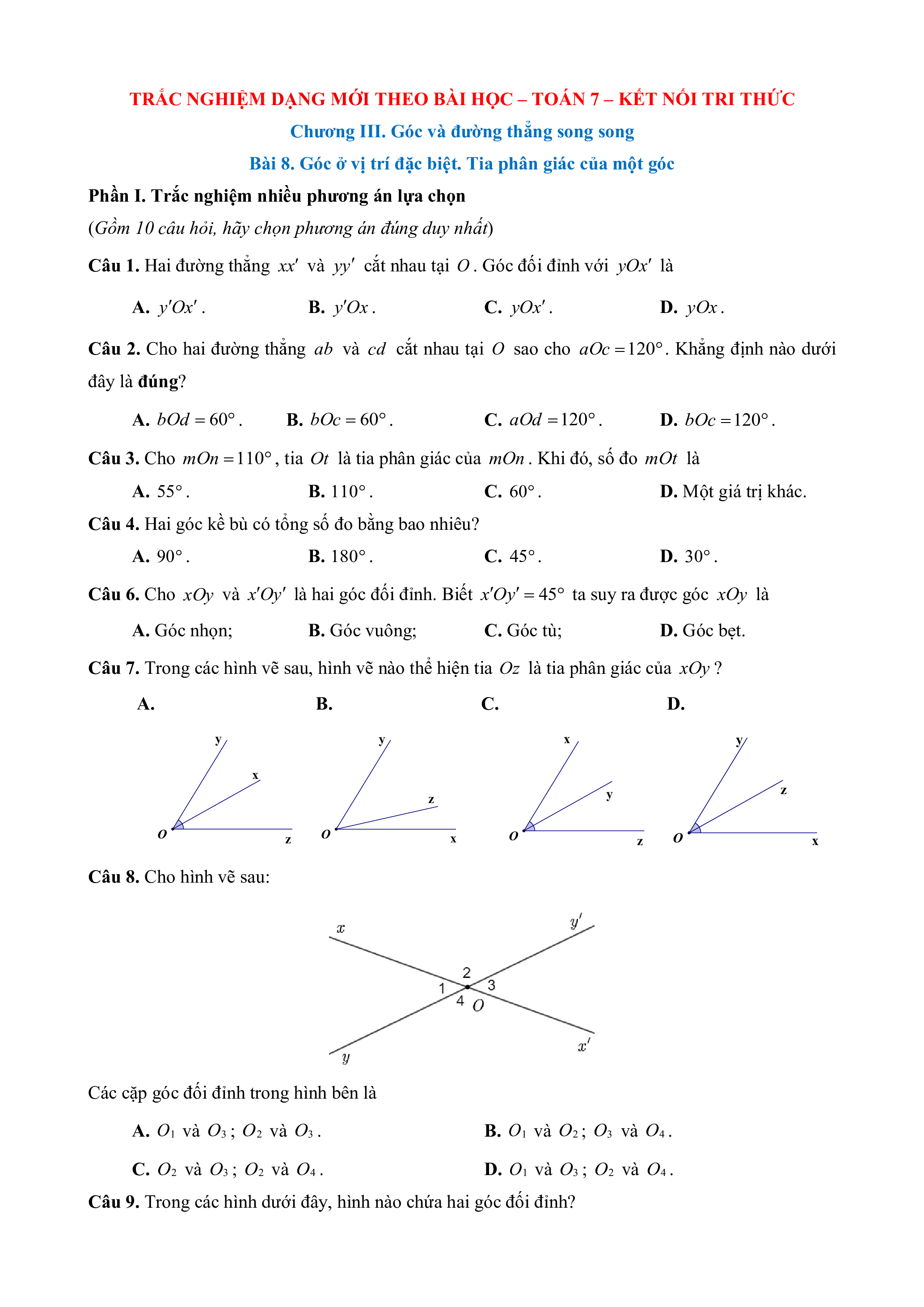 Bài 8. Góc ở vị trí đặc biệt. Tia phân giác của một góc