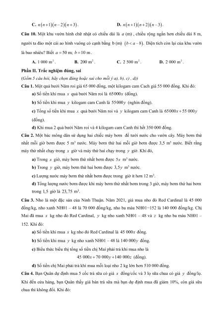Câu 6. Một quyển sách có giá a (đồng) và một quyển vở có giá b (đồng). Hỏi số tiền mua 3 quyển
