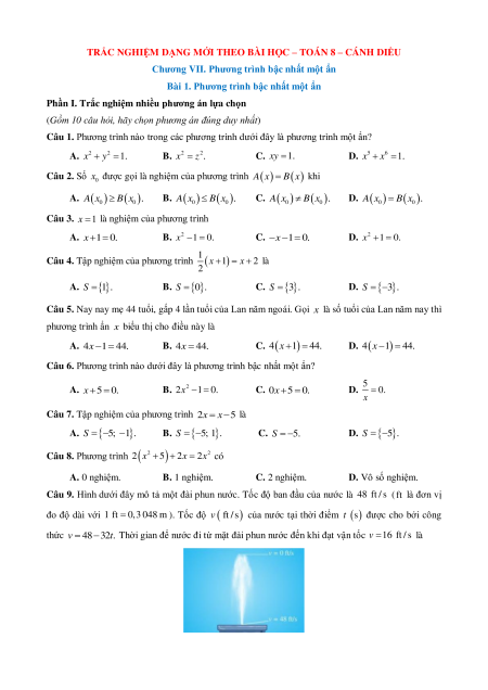 Câu 6. Phương trình nào dưới đây là phương trình bậc nhất một ẩn? 5