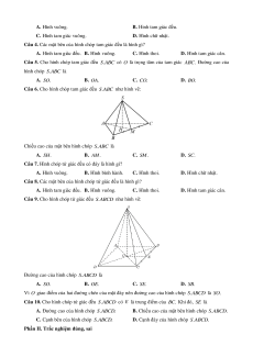 Câu 9. Cho hình chóp tứ giác đều S.ABCD như hình vẽ: