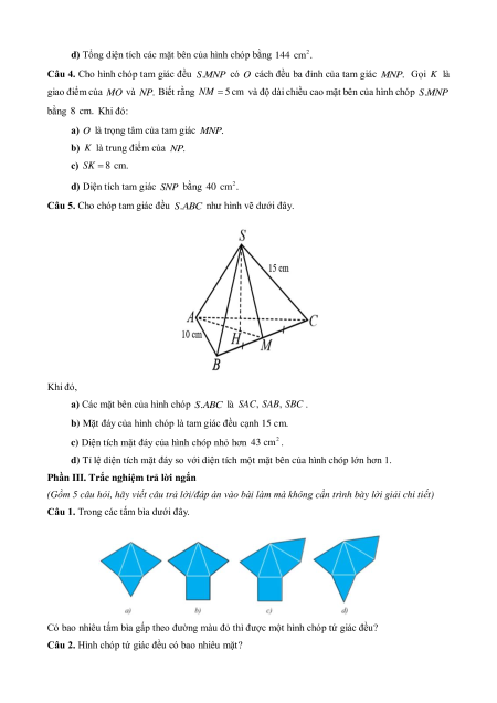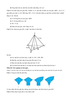 NP Biết rằng NM 5 cm và độ dài chiều cao mặt bên của hình chóp S.MNP bằng 8 cm. Khi đó: