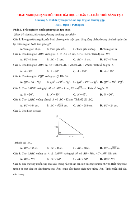 TRẮC NGHIỆM DẠNG MỚI THEO BÀI HỌC – TOÁN 8 – CHÂN TRỜI SÁNG TẠO