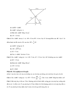 a) AH 8 m. b) CH 9 m. c) Chu vi A HC bằng 40 m. d) Chu vi ABC lớn hơn chu vi A HC khoảng 15 m. AB 3 Câu 2. Cho ABC