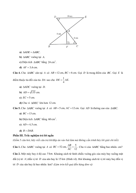 Câu 3. Cho hình vẽ: a) A DE A B . C b) ABC vuông tại . A