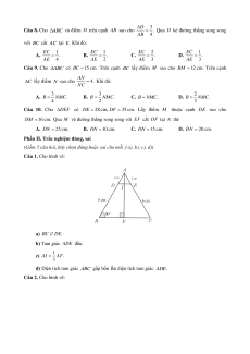 với BC cắt AC tại E. Khi đó: EC 1 EC 1 EC 2 EC 1 A. . B. . C. . D. . AE 4 AE 2 AE 3 AE 3 Câu 9. Cho ABC