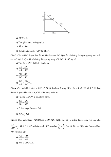 a) Tứ giác AEDF là hình bình hành. AE CD b) . AB BC ED BD c) . AC BC DF ED d) 2. AB AC