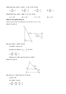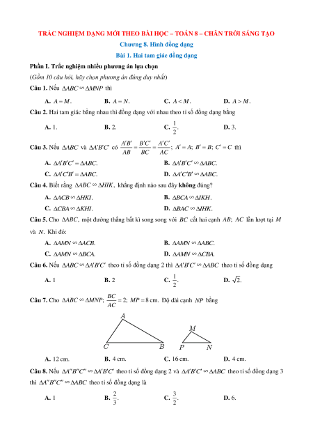 (Gồm 10 câu hỏi, hãy chọn phương án đúng duy nhất) Câu 1. Nếu A BC M ∽ NP thì