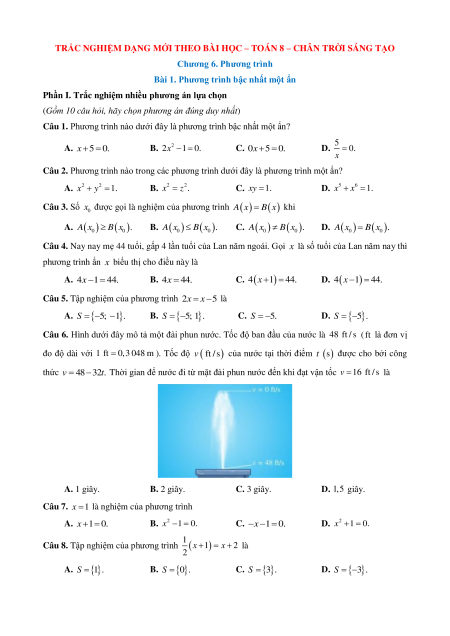Câu 1. Phương trình nào dưới đây là phương trình bậc nhất một ẩn? 5