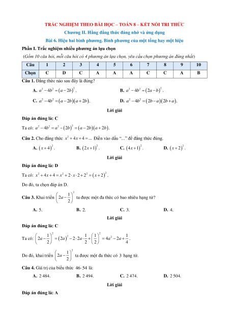 TRẮC NGHIỆM THEO BÀI HỌC – TOÁN 8 – KẾT NỐI TRI THỨC