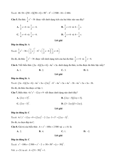 50 4 50 4 50 4 2 500 16 2 484. 1 Câu 5. Đa thức 2