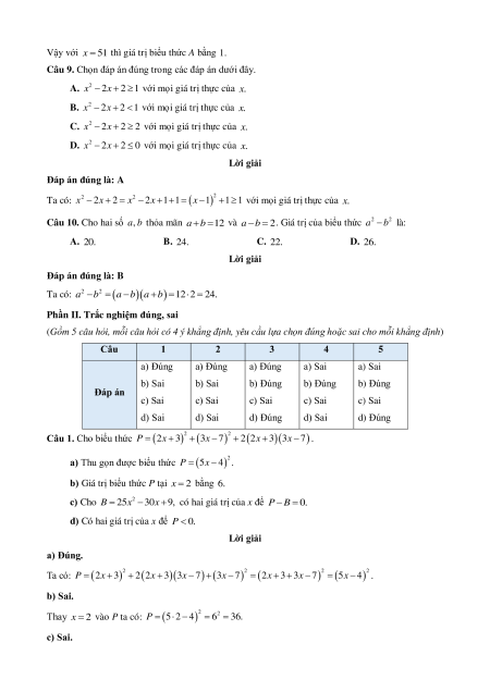 Do đó, đa thức thu được có bậc 1. Câu 7. Biểu thức 2 2