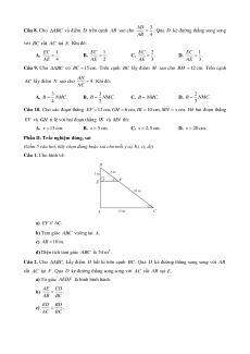 với BC cắt AC tại E. Khi đó: EC 1 EC 1 EC 2 EC 1 A. . B. . C. . D. . AE 4 AE 2 AE 3 AE 3 Câu 9. Cho ABC